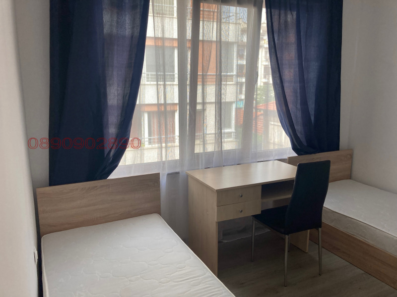 Нов непреходен апартамент в широк център с 2 просторни, самостоятелни спални, голям хол с кухня, слънчева голяма тераса, просторен коридор с трикрилен вграден гардероб, мокро помещение и голяма баня с тоалетна и душ кабина. Жилището е обзаведено с нови мебели, вградени електроуреди и климатик. Светъл, топъл и просторен апартамент, с ниски режийни разходи, югозападно изложение, в непосредствена близост до Медицински университет, Била, парк Артилерийски, Окръжна болница, училища, спирка на градски транспорт, магазини. С контрол на достъпа! Местоположение: между новия парк и окръжна болница. Подходящ за чуждестранни студенти!!!