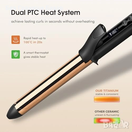 25 мм истински титанов цилиндър – бърз и равномерен топлообмен за еластични къдрици и меки вълни
