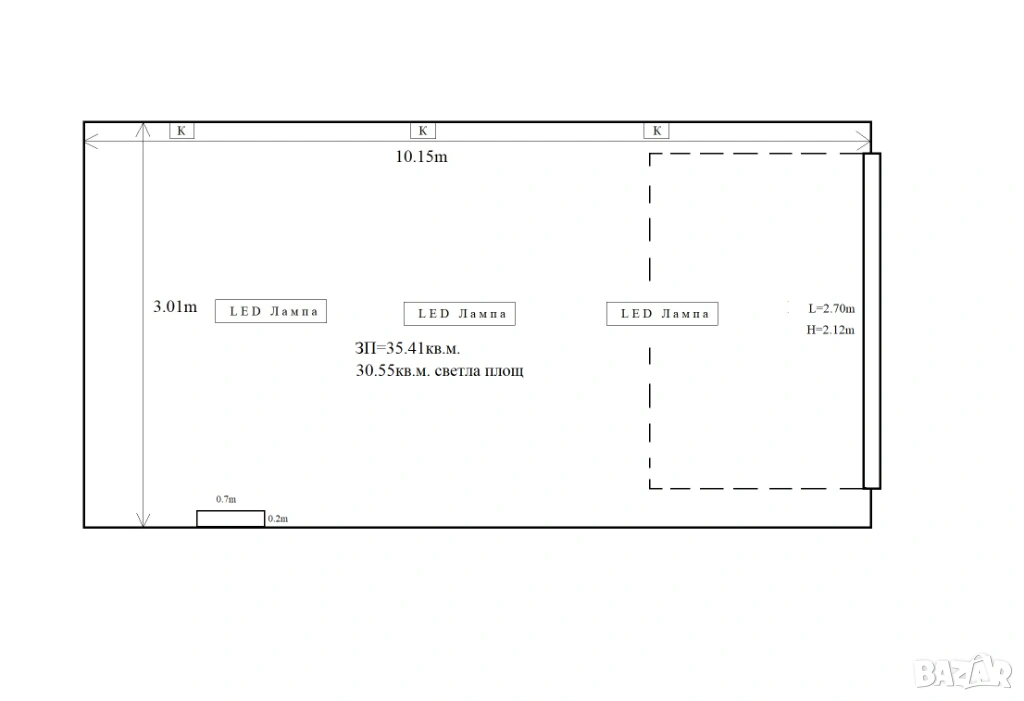 Отдавам склад/гараж под наем с възможност за паркиране на 2 коли, находящ се на кръстовището м/у ул. Боряна и ул. Монтевидео 16 в сграда с АКТ16 от 2025-та година, намиращ се в близост до НБУ и Околовръстен път, ситуиран на ниво ПАРТЕР, със застроена площ 36кв/м и чиста светла площ (вътре) 30.6кв/м. За улеснение прилагам оразмерен чертеж и разпределение. Гаражът е с автоматична врата с дистанционно управление. Има собствена партида за ток. Също така има 3бр монофазни контакти и се осветява с 3бр LED лампи. На тавана е монтирана топло и шумоизолация. Възможност за включване към интернет доставчик.