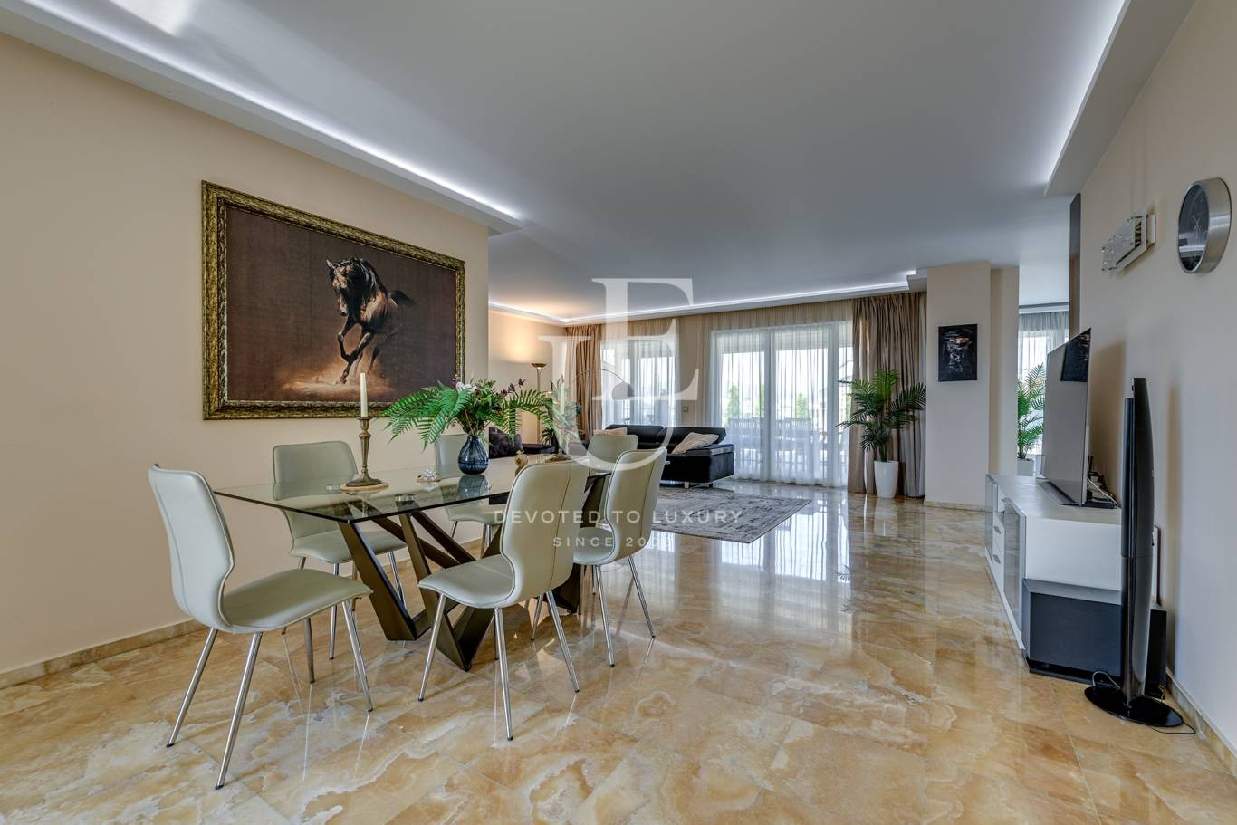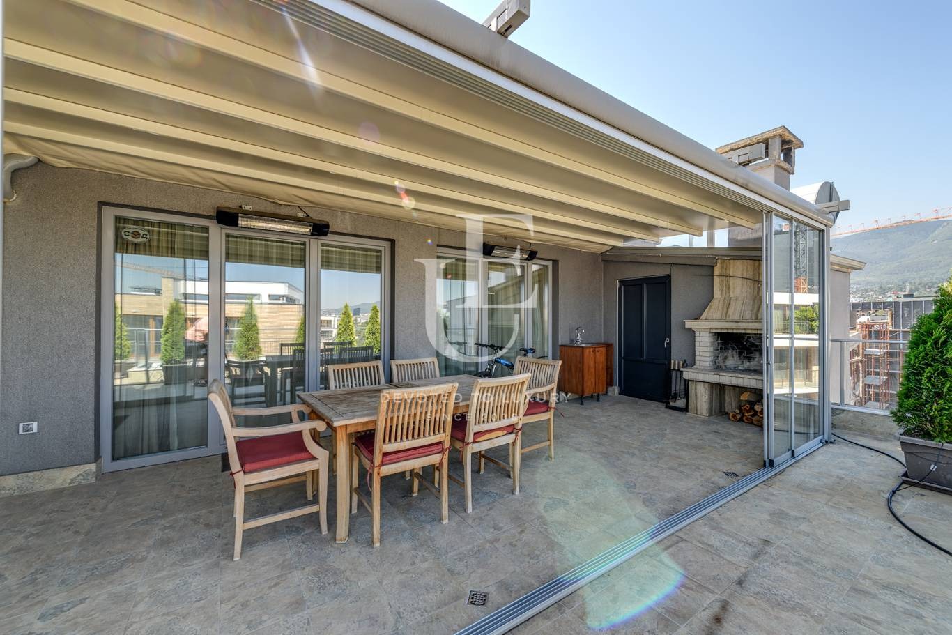 Жилището е проектирано с внимание към всеки детайл, предлагайки функционалност и простор. Интериорът залага на вечната елегантност на мраморните настилки, допълнени от висококачествен мокет в спалните за максимален уют. Просторно и светло пространство в дневната зона, плавно преливащо към модерна кухня, оборудвана с висок клас електроуреди Siemens. Светли спални, допълнени от две самостоятелни гардеробни помещения, осигуряващи перфектна организация и удобство. Истинското бижу на този пентхаус е неговата просторна покривна тераса. Тук градският хоризонт и силуетът на Витоша се срещат, за да предложат завладяваща панорама. За целогодишен комфорт част от терасата е интелигентно остъклена и разполага с артистична камина, превръщайки пространството в идеалното място за релакс или социални събития, независимо от сезона.
