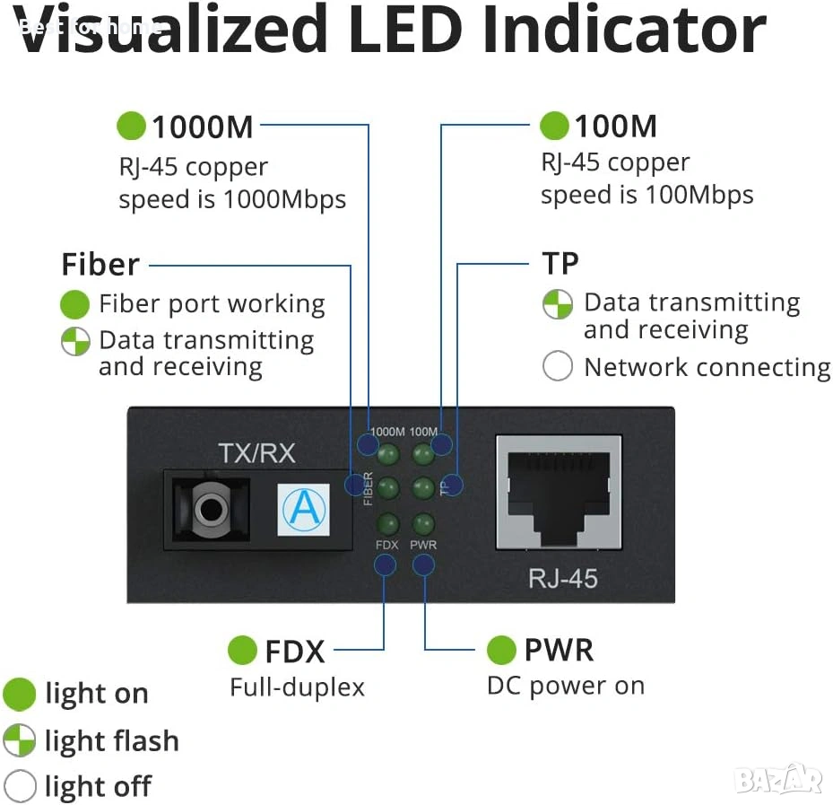 [Конвертиране на оптичен кабел към Ethernet] Медийните конвертори Bidi ви предоставят рентабилно, силно анти-смущаващо и стабилно решение за пренос на данни за мрежови разширения. Проектирани са за конвертиране на 10/100/1000Base-Tx меден кабел към 1000Base-EX оптичен кабел или обратно.