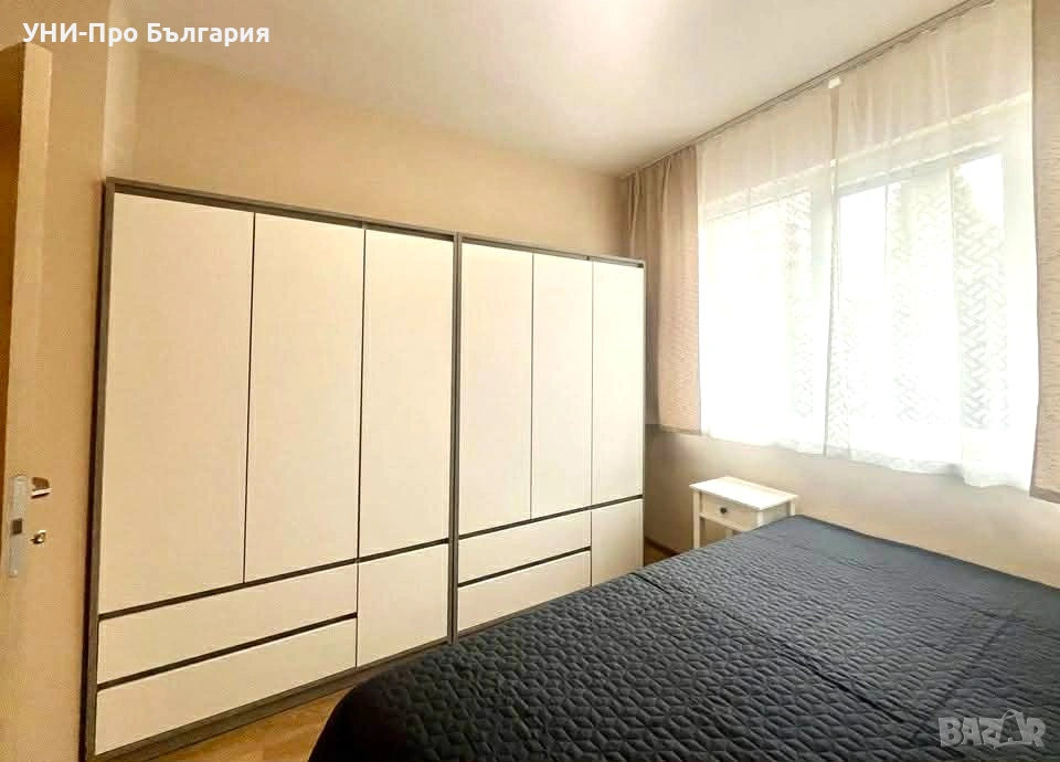 Жилището е основно ремонтирано и е обзаведено с нови, качествени мебели. Кухнята е със шкафове по поръчка и вградени ел. уреди - керамични котлони, фурна и абсорбатор от ТЕКА. Има хладилник с фризер и климатик. В мокрото помещение е инсталирана пералнята. Спалнята е обзаведена със 6-крилен гардероб с чекмеджета и легло 140/200 см. Банята е модерна и оборудвана с всичко необходимо.