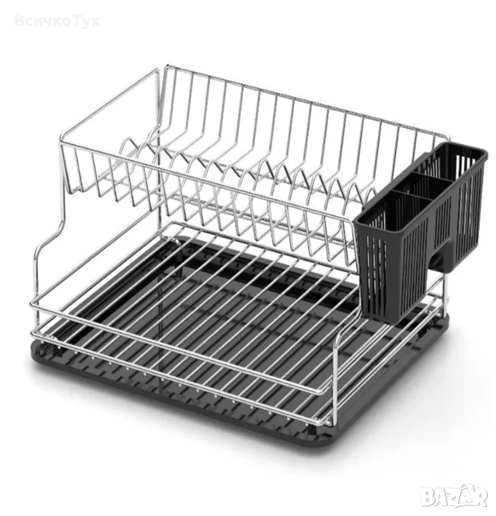 Практичен и стабилен сушилник за съдове, който осигурява удобно подреждане и бързо изсушаване след измиване.