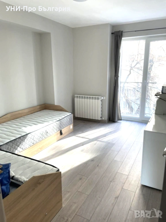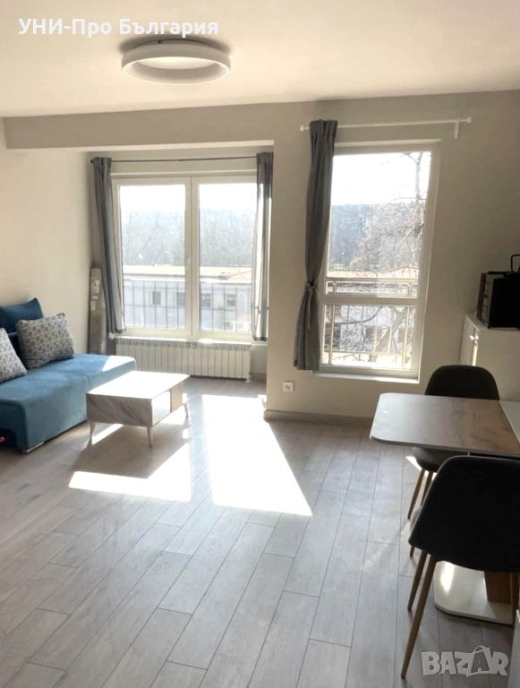Южен 3-стаен апартамент в нова, луксозна сграда в центъра, район Оборище, до парка Заимов. Жилището се състои от дневна с трапезария и кухненски бокс с излаз на балкон, 2 спални, баня с тоалетна и отделна тоалетна. Апартаментът е модерно обзаведен с нови мебели: Дневната е с диван, холна масичка, трапезарна маса и столове, кухненският бокс е с поръчкови шкафове с вградени ел. уреди - фурна, миялна машина, керамични котлони и абсорбатор.