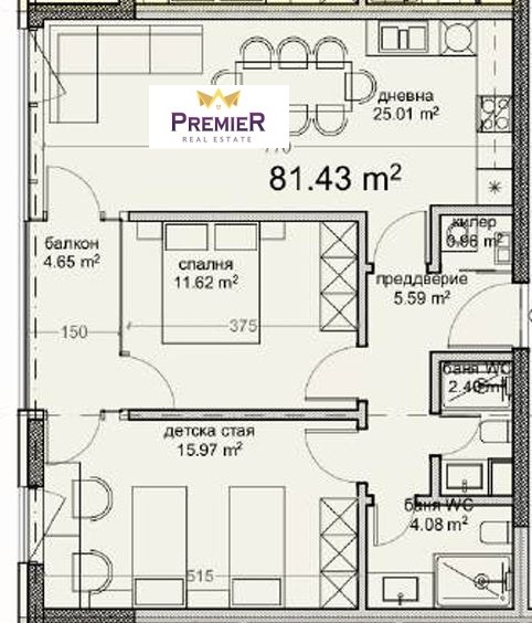 Имоти ПРЕМИЕР предлага на Вашето внимание просторен и отлично разпределен тристаен апартамент, разположен в модерен жилищен комплекс от ново поколение, в най-бързо развиващата се част на квартала, с нова инфраструктура и лесен достъп до всички точки на града.