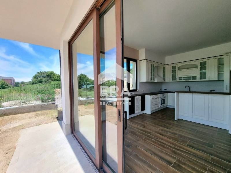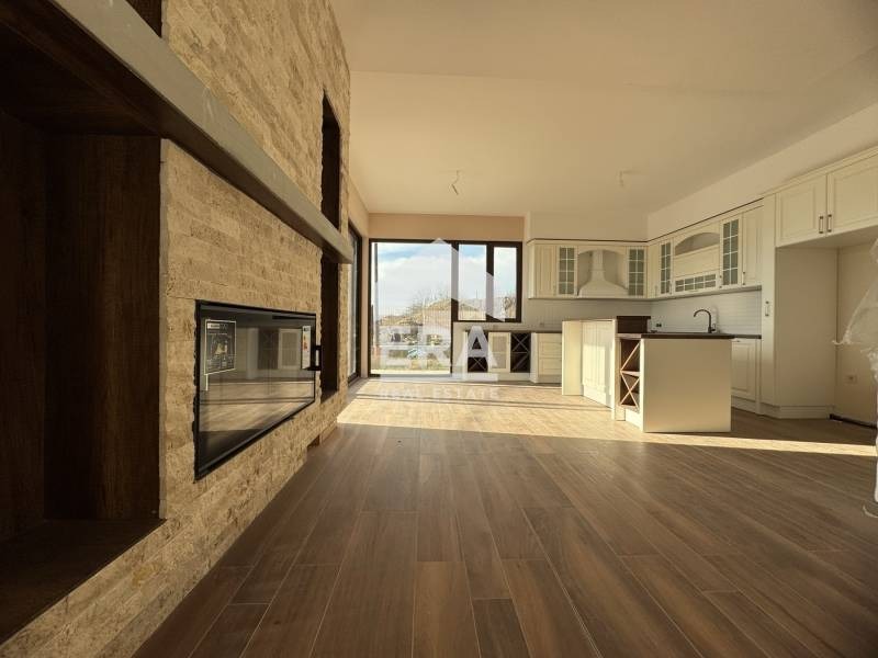 Имотът се отличава с изключителни удобства и технологии - луксозна кухня Прего в бял сатен с чисто нови уреди EUROLUX от най-висок клас. Мивка LEKS, стилно LED осветление, вграден хладилник с AI технология. Всяко помещение е оборудвано с конвектори за отопление и охлаждане, които се управляват чрез мобилно приложение. На стената в трапезарията е разположена елегантна стенна камина, добавяща уют и чар. Кабелен интернет е изведен до всяка телевизионна точка в дома. Подовете в трапезарията и коридорите са завършени с висококачествен италиански гранитогрес, осигуряващ стил и дълготрайност. Спалните са подготвени с винилови настилки за максимален комфорт. 7-камерна PVC дограма за отлична енергийна ефективност и шумоизолация. Индустриална помпа (чилър) с възможност за свързване към генератор прави дома енергийно независим. На покрива е предвидена фотоволтаична система с капацитет 12 KW (20 х 600 W панели), осигурявайки зелена и икономична енергия за семейството.
