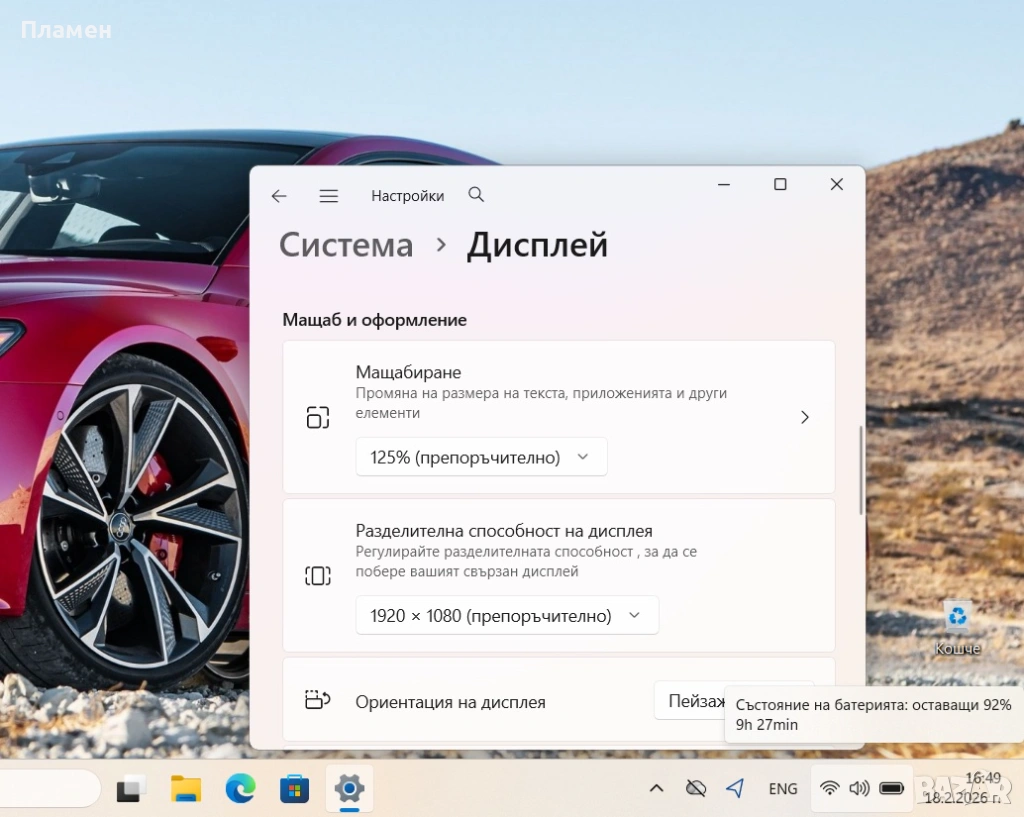 Оригинален и лицензиран Windows 11 Pro закупен заедно с лаптопа.