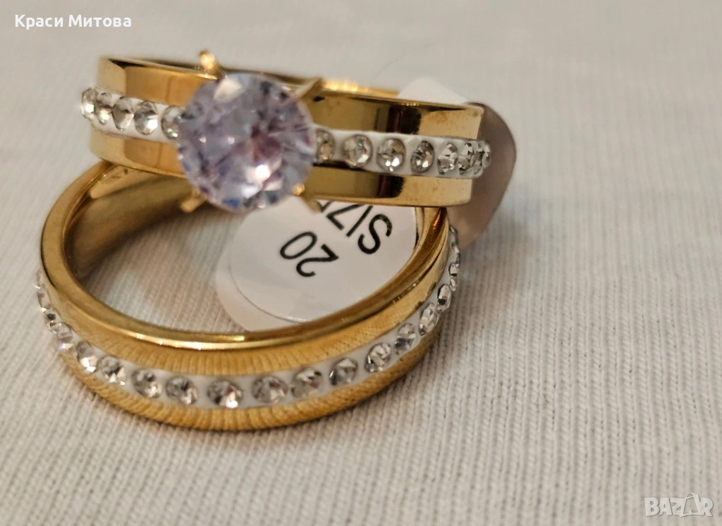 Стилен комплект от 2 броя пръстени с цирконии от медицинска стомана → Обява 53524217