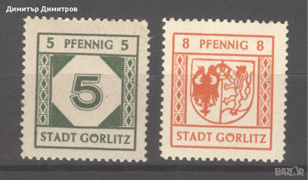Германия 1945г. - Град Гьорлиц Mi 1,3 чисти,оригинално лепило,с лепенка каталогирани 15 евро