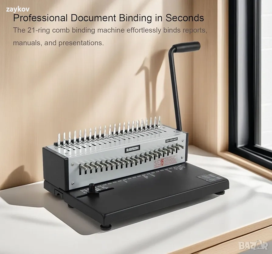 Машина за подвързване RAYSON с гребен, 21 отвора, подвързване на 200 листа