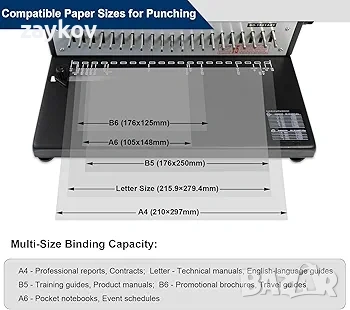 [Лесна за потребителя прецизност] Включва регулиране на полетата на хартията и странични водачи за хартия, за да се осигури подобрена точност на подвързване, което го прави подходящ за прецизно подвързване на документи с формат A4 и по-малки размери.