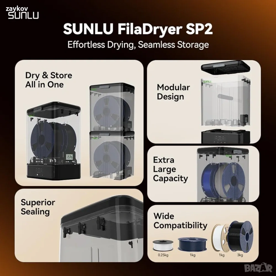 SUNLU сушилня за филамент SP2 и кутия за съхранение на филамент