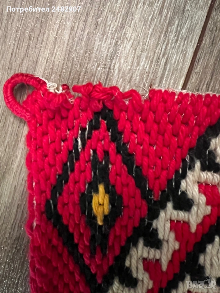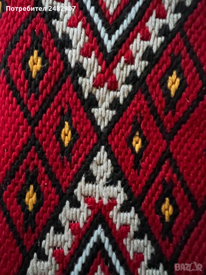 Старо, ръчно бродирано, битово пано за стена/ Ковьор. Размери с ресните - 61/100 см. Запазено, много малко използвано, с дребни забележки, видими от снимките.