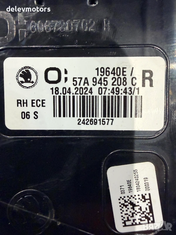 57A945208C led стоп десен от Skoda Karoq 1.5 TSI двигател DXDB, 150 кс., автоматик DSG7, 2024 г., 1 300 км., евро 6Е, Шкода Кароk 1.5 ТСИ, engine DXDB, 150 hp., auto DSG7, euro 6E в автоморга Delev Motors, между с. Каменар и с. Куманово гр. Варна.