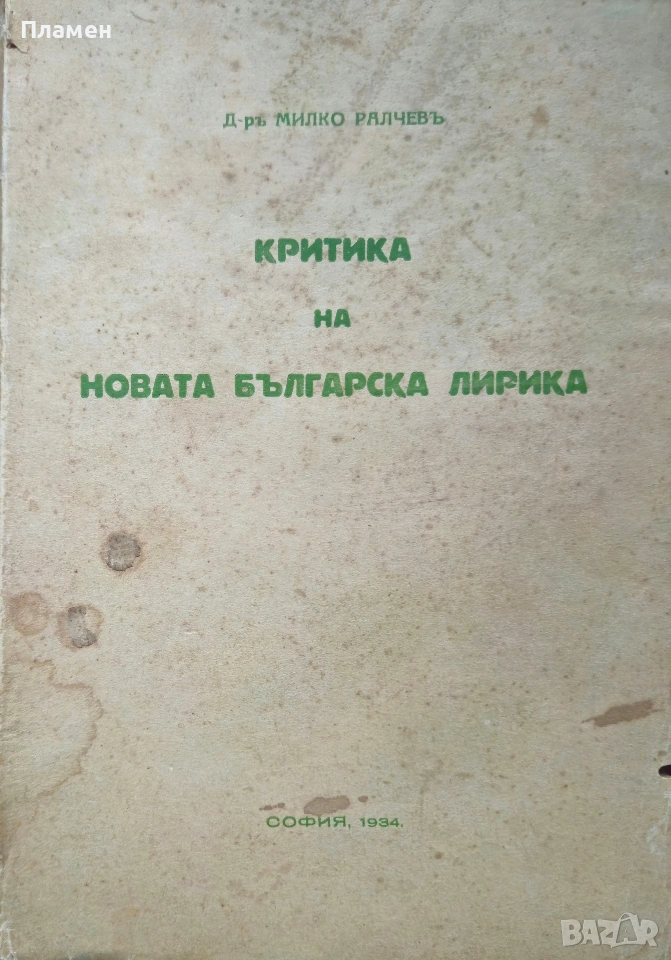 Критика на новата българска лирика Милко Ралчевъ /1934/ → Обява 53524769
