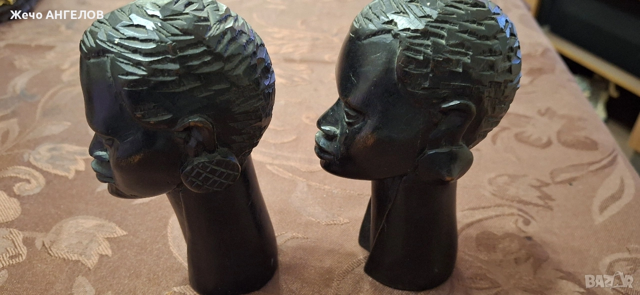 африкански дървени статуетки (глави), изработени от абанос → Обява 53524847