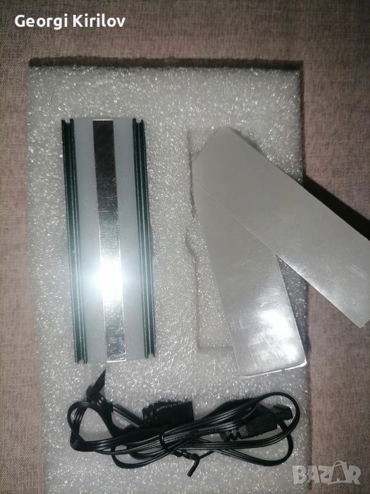 Чисто нов 5V 3 pin алуминиев ARGB охладител за NVME или SSD с 2 термоподложки с различна дебелина. За по-сигурно може да ми пишете на вайбър.