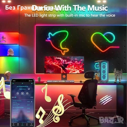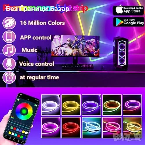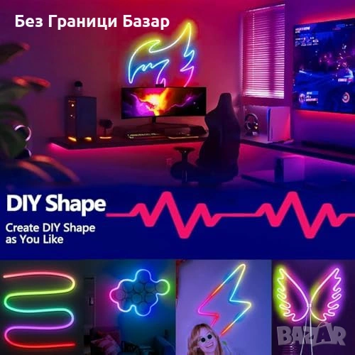 Нова Неонова LED въжена лента 3м RGBIC WS2811 музикален режим осветление