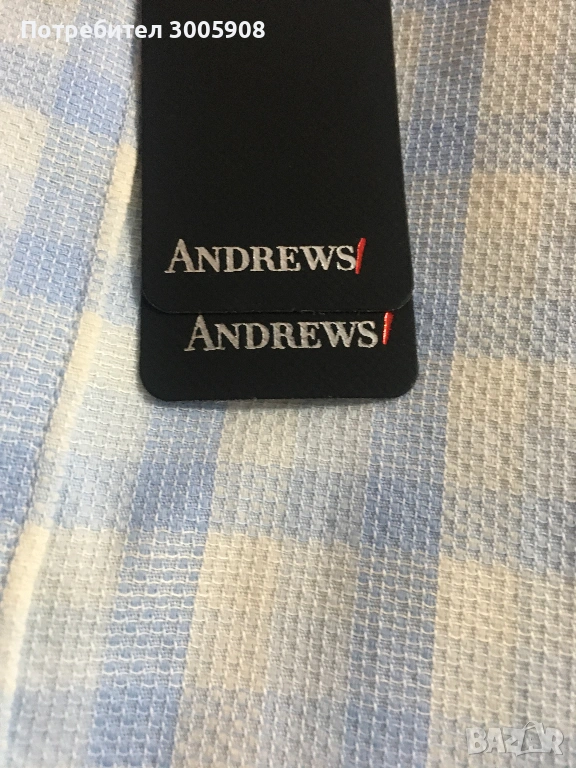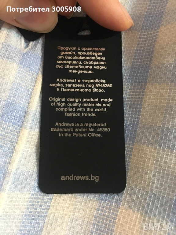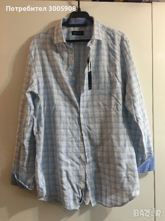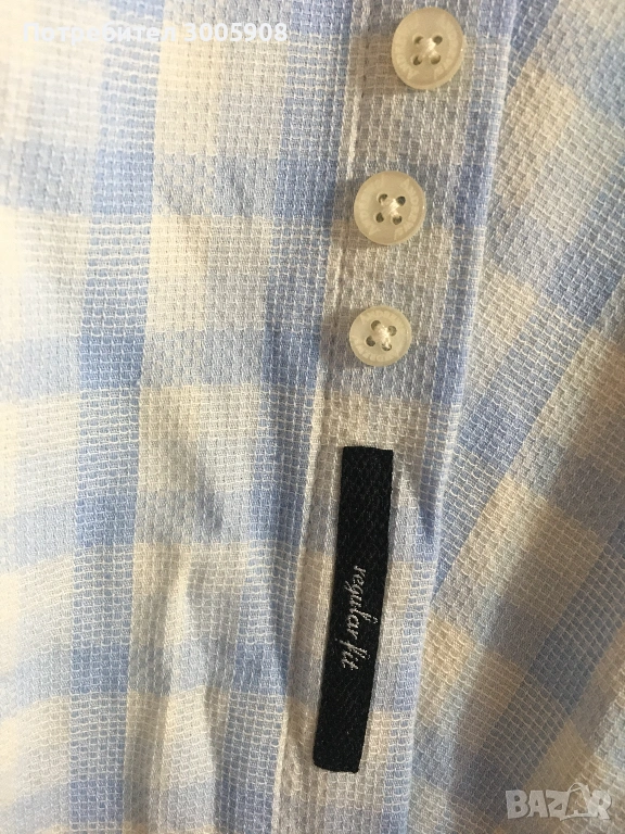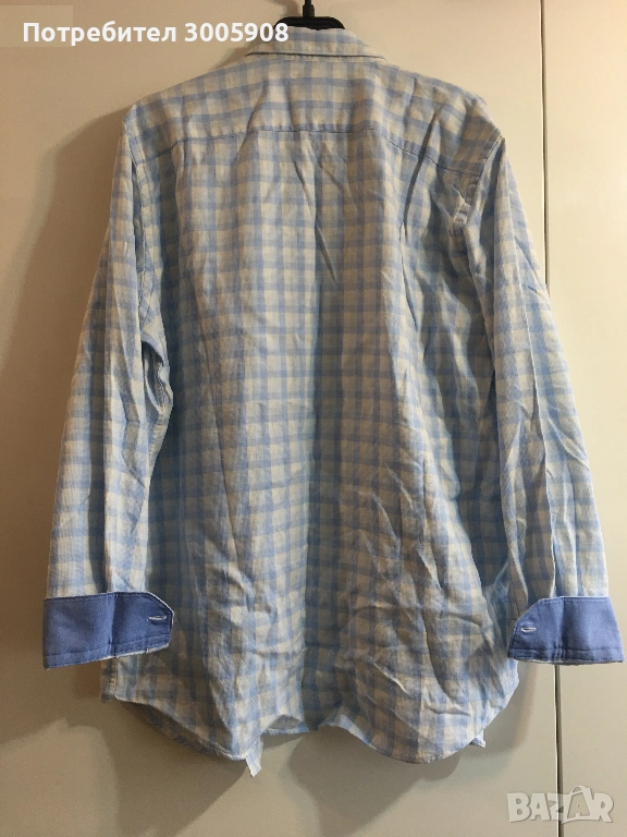 памучна риза бяло и небесно синьо, модерна за сезона.
