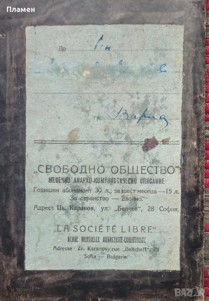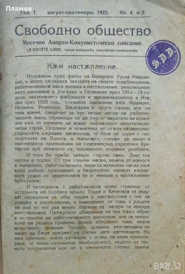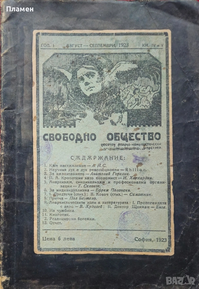 Свободно общество. Год. 1: Кн. 4-5. Месечно Анархо-Комунистическо списание -издание 1923г. в 64 страници -18 евро.
