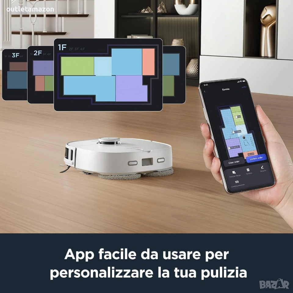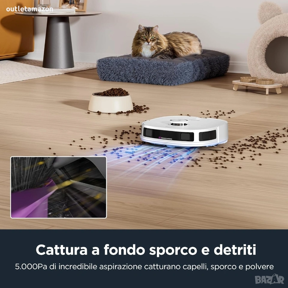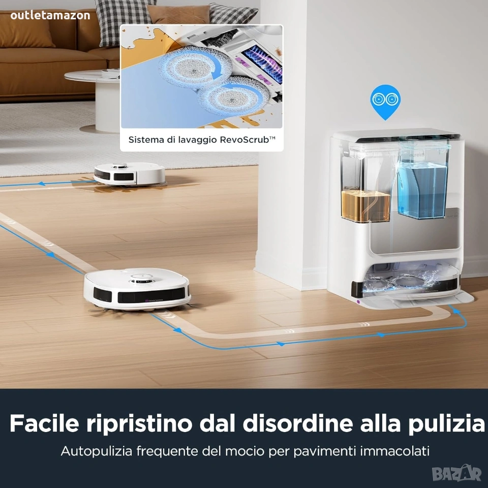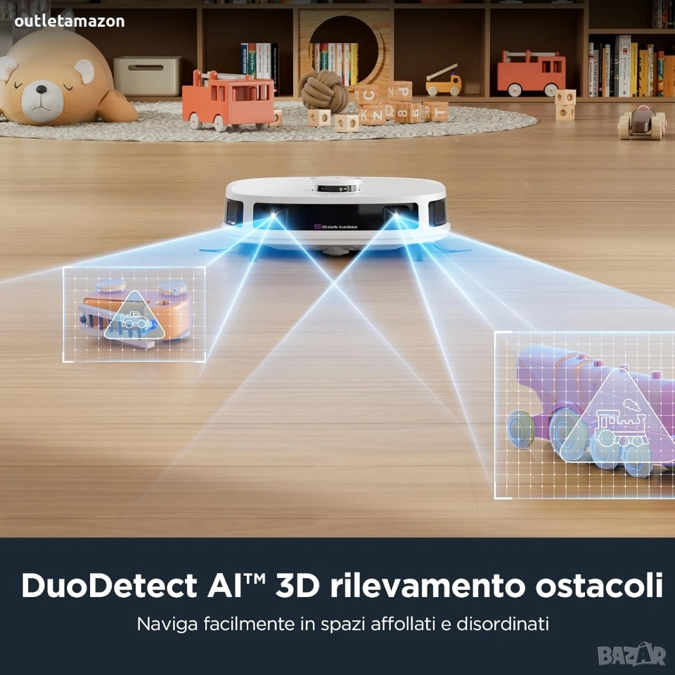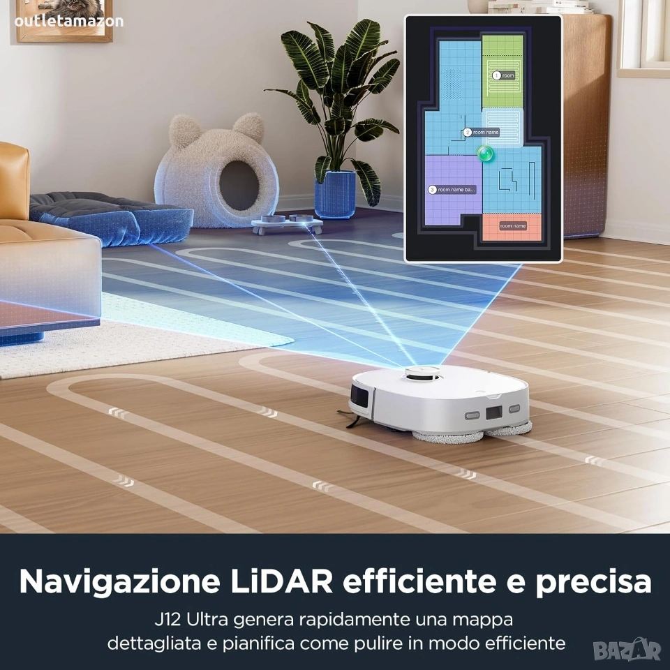 Прахосмукачка робот Eureka J12 Ultra Препоръчителни повърхностиТвърди подове, Паркет, Килими, Мокети. Специална функцияАвтоматично измиване на моп, LiDAR навигация, Избягване на препятствия, Автоматично изпразване.3D DuoDetect AI откриване на препятствия: J12 Ultra разполага с усъвършенствана AI технология за по-интелигентна навигация, изграждайки 3D модели на препятствия на земята, за да избягва интелигентно мебели и други препятствия; откриването на препятствия се отличава при различни условия на осветление, поддържайки високо ниво на производителност дори в присъствието на домашни любимци. Базова станция „всичко в едно“: Изпитайте несравнимо удобство с нашата станция „всичко в едно“, включваща самопочистване/самопочистване/самосъхнене; функцията за самопочистване позволява до 75 дни живот на батерията и самосъхнене на мопа с горещ въздух при 55°C; тази станция поддържа мопа винаги чист и готов за всяка употреба, елиминирайки необходимостта от честа намеса от ваша страна. Прецизна навигация с LDS LiDAR: Задвижвана от усъвършенствана LiDAR система, роботизираната прахосмукачка и моп J12 Ultra ефективно картографира и изучава разположението на вашия дом, осигурявайки точни и ефикасни пътища за почистване всеки път. Интелигентно почистване с многофункционалност: J12 Ultra може ефективно да почиства множество зони; предлага четири режима на почистване: Едновременно прахосмукачка и почистване с моп, прахосмукачка след почистване с моп, само прахосмукачка и само почистване с моп; режимът на прахосмукачка осигурява дълбоко почистване на килими; режимът на почистване с моп се фокусира изключително върху твърди повърхности, като интелигентно идентифицира и избягва килимите, за да гарантира, че покритите с мокет зони остават сухи. Мощно засмукване от 5000 Pa: Роботизираната прахосмукачка J12 Ultra има мощно засмукване от 5000 Pa, може да премахва мръсотия, отломки и косми от домашни любимци от множество повърхности, включително килими, дървени подове, ламинат и пътеки. Пълно почистване с батерия от 5200 mAh: Оборудвана с батерия от 5200 mAh, роботизираната прахосмукачка и моп J12 Ultra постига до 150 минути живот на батерията, предлагайки почистване на големи площи до 300 квадратни метра с едно зареждане, което я прави идеална за големи домове. Удобно управление чрез приложение: Получете пълен контрол над вашата роботизирана прахосмукачка J12 Ultra с нашето лесно за използване приложение; приложението Eureka проследява пътя на вашата прахосмукачка, планира почистване, регулира нивата на засмукване и внедрява разширени функции като No-Go Zones и Invisible Walls за персонализирано почистване; Забележка: За оптимална производителност и функционалност е необходима 2.4GHz Wi-Fi връзка, за да свържете продукта. Адрес на магазина Стара Загора ул.воевода Стойчо Черногорски 98. Тел. 0899152740. Цена 280€.