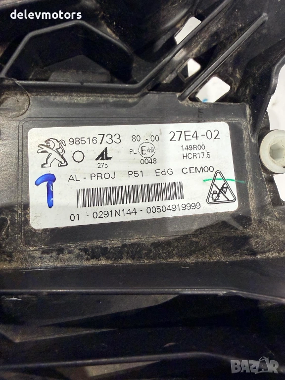 9851673380 led фар ляв със забележки от Peugeot 308 (P5), 1.2 Pure Tech 131 кс., двигател HNS, ск. кутия АТN8 автоматик, 12 000 km., 2024 г., euro 6Е, Пежо 308 1.2i, 131 hp., engine HNS , (EB2ADTS), 2024 г., gear box АТN8 в автоморга Delev Motors, между с. Каменар и с. Куманово гр. Варна.