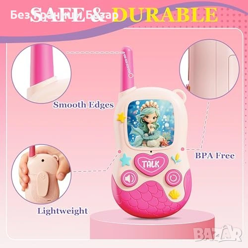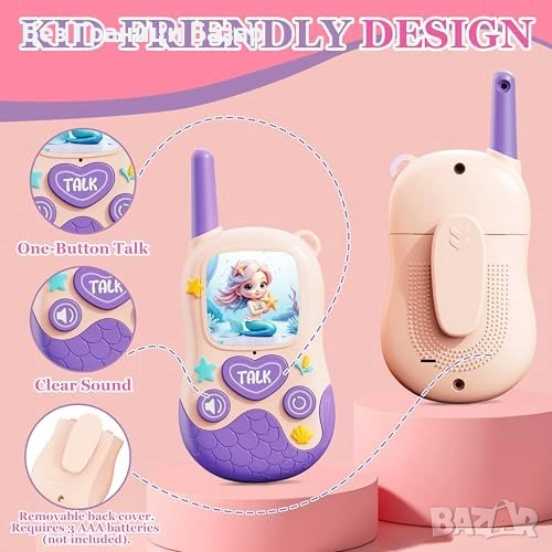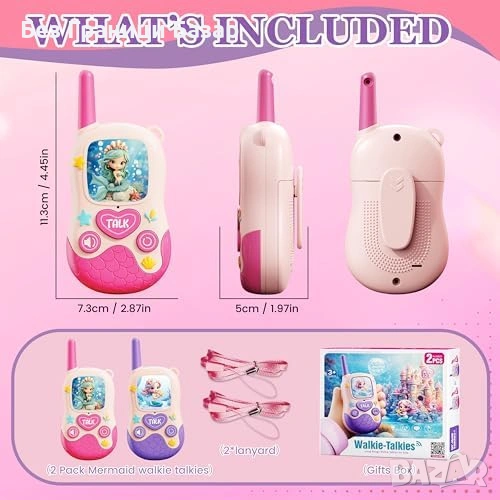 Комплект 2 броя детски уоки-токи с дизайн „русалка“ – подходящи за момичета 3–9 г.