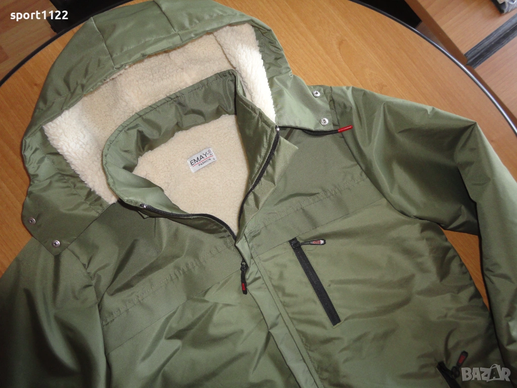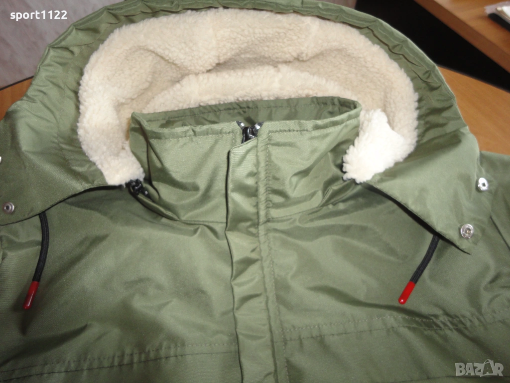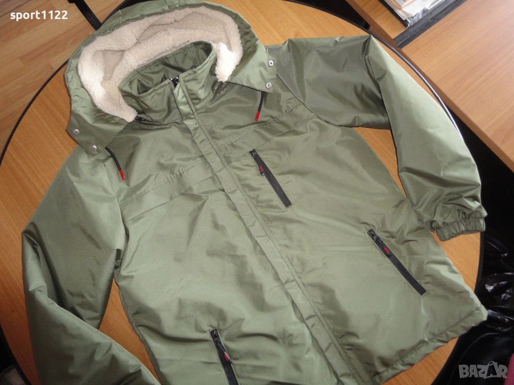Мъжко яке, чисто ново, купувано от Trendyol, но се оказа малко. Цвят войнишко зелен, водоустойчива материя. Отвътре с много мек каракул. Качулката е подвижна, може да се маха. Отговаря на размер М.