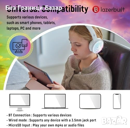 Нови детски 2 в 1 Bluetooth/Жични Слушалки с Микрофон MicroSD 10м Обхват LED