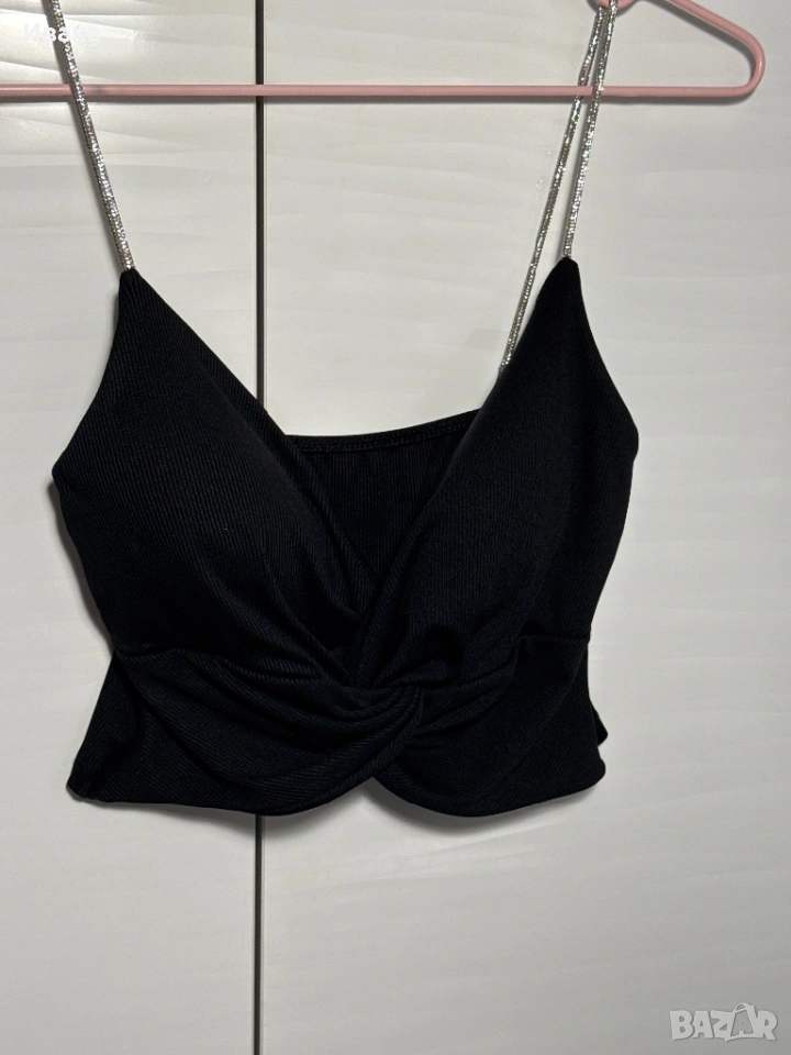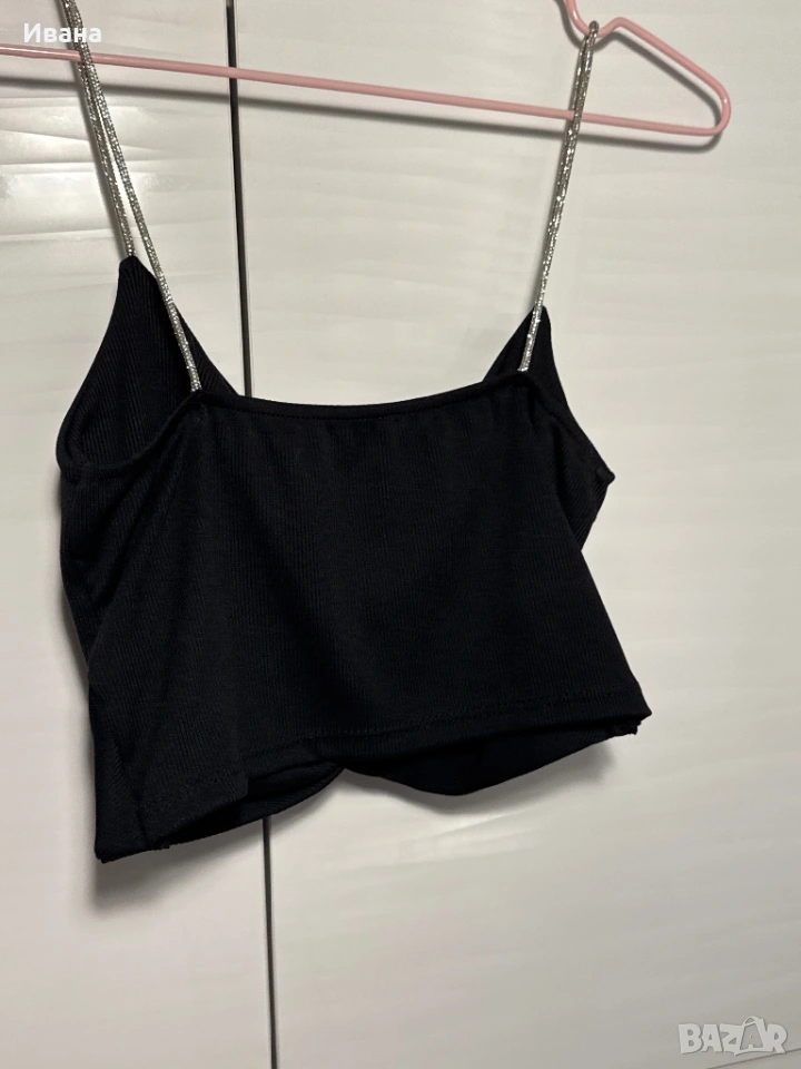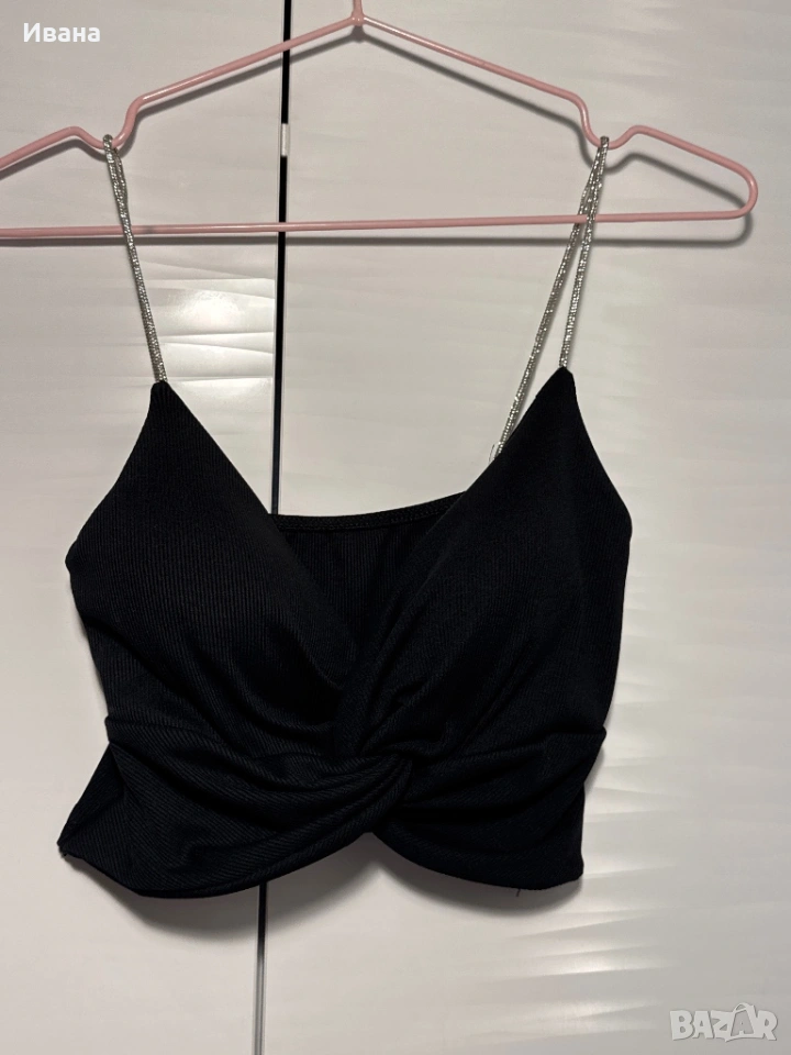 Черен топ с блестящи презрамки. Нов, в отлично състояние. Има подплънки.