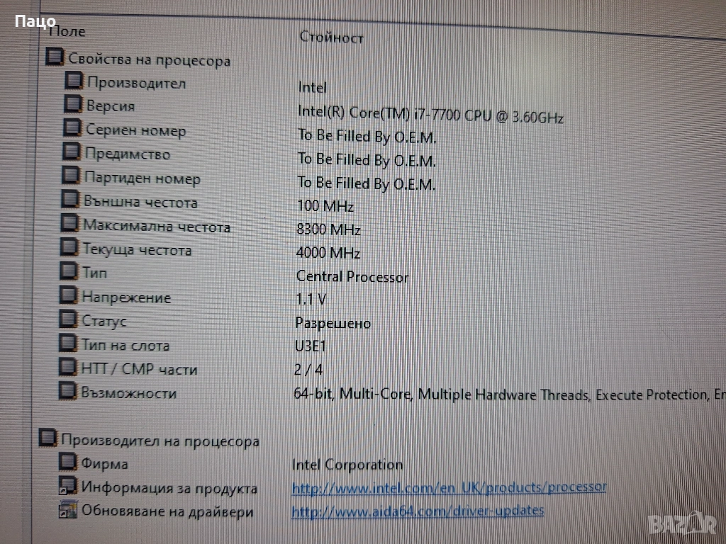 Процесор Intel Core i7-7700 (3.6GHz) → Обява 53526049