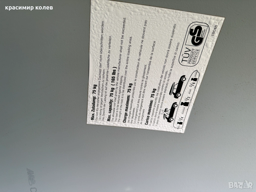 - Макс. товар: 75 кг (включително теглото на кутията – винаги спазвай лимита на твоята кола и покривни релси).