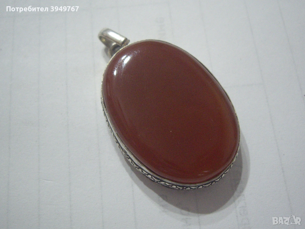 Голяма висулка с голям корнеол или кехлибар в обков от сребро за колие.