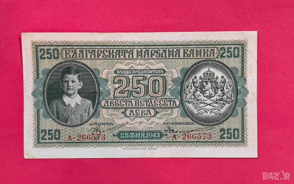 250 лева 1943 година България , серия А - XF → Обява 53526439