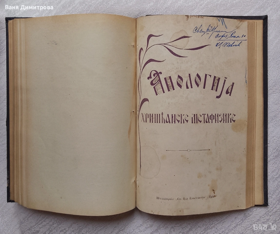 Апологија Хришћанске Метафизике „Апология на християнската метафизика“ По В. Несмјелову, Синђел Демостен, Ниш, 1926 г. 100 страници