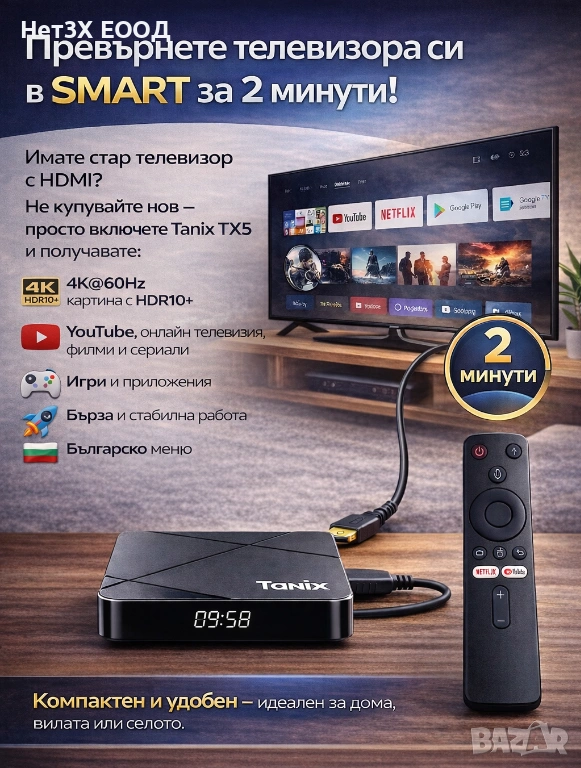 Превърнете стария си телевизор в SMART TV за 2 минути!