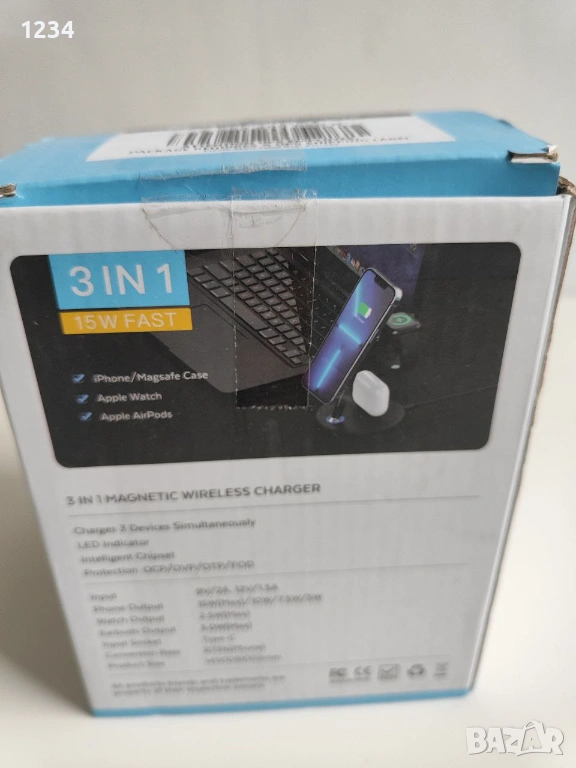 3в1 бесжично зарядно, снимка 1 - Безжични зарядни - 53526612 3в1 бесжично зарядно, снимка 2 - Безжични зарядни - 53526612 1/2