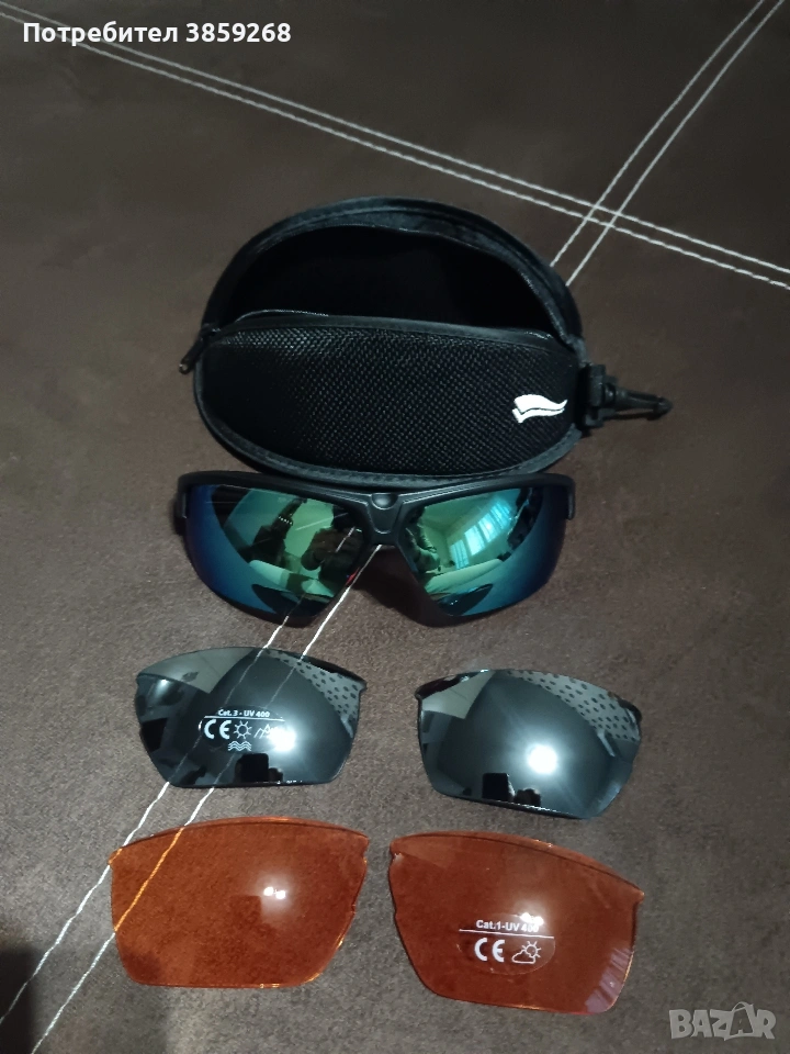 Предлагам чисто нови висококачествени спортни очила на SPEQ GmbH, модел SP-1483. Подходящи за колоездене, бягане, планински туризъм, шофиране и ежедневна употреба. Основни характеристики: Модел: SP-1483 Производител: SPEQ GmbH 100% UV защита (UV400) Категория 3 (силно слънце) Лек и ергономичен дизайн Аеродинамична спортна форма Стабилна рамка с удобно прилягане Комплектът включва: Оригинални очила с огледални стъкла 2 броя резервни тъмни стъкла (Cat.3 UV400) 2 броя оранжеви стъкла (Cat.1 UV400 – подходящи за слаба светлина) Твърд защитен калъф Почистваща кърпа Предимства: Сменяеми лещи според условията Отлична видимост и защита от отблясъци Подходящи за активен начин на живот Модерен спортен дизайн Очилата са чисто нови, без забележки и следи от употреба.