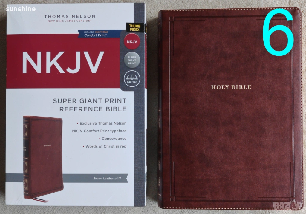 6. €60 (две налични) - NKJV Holy Bible, Super Giant Print Reference Bible, Brown Leathersoft, Thumb Indexed, 43,000 Cross references, Red Letter, New King James Version Imitation Leather – Large Print