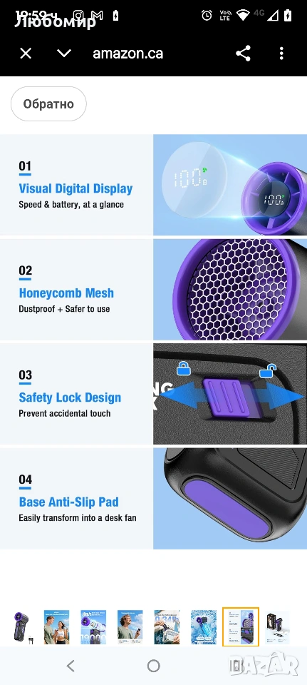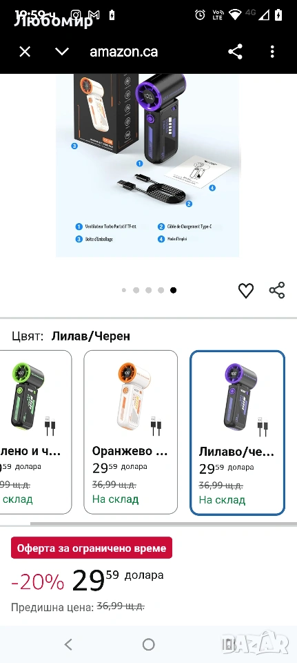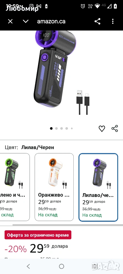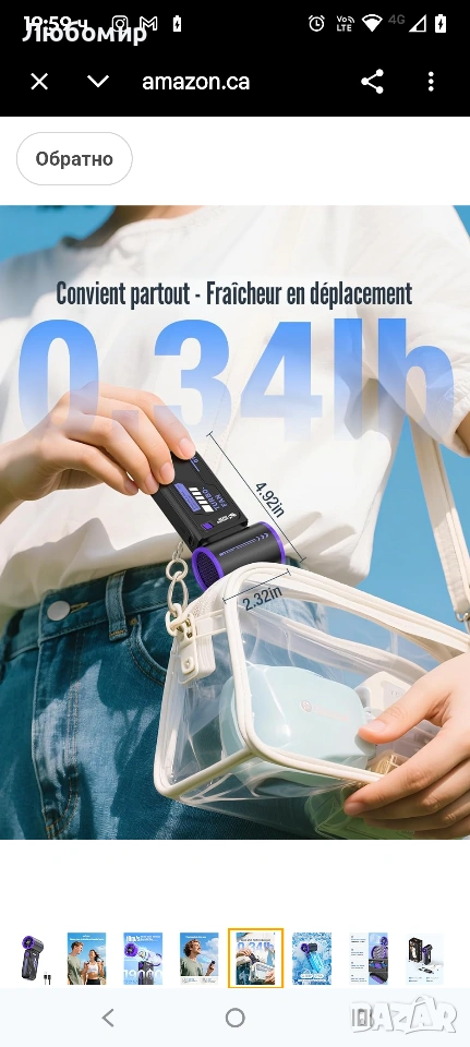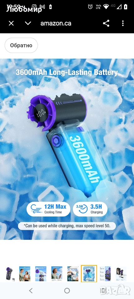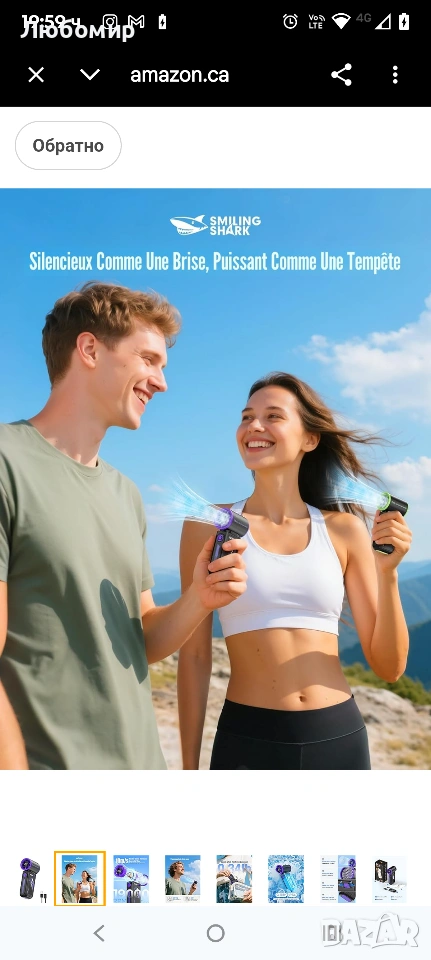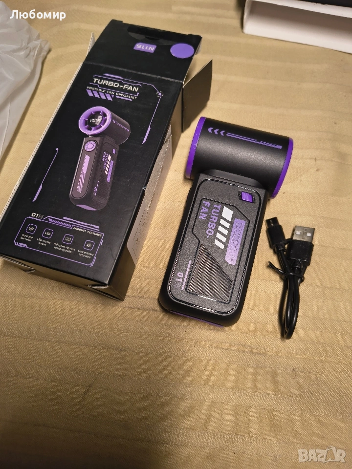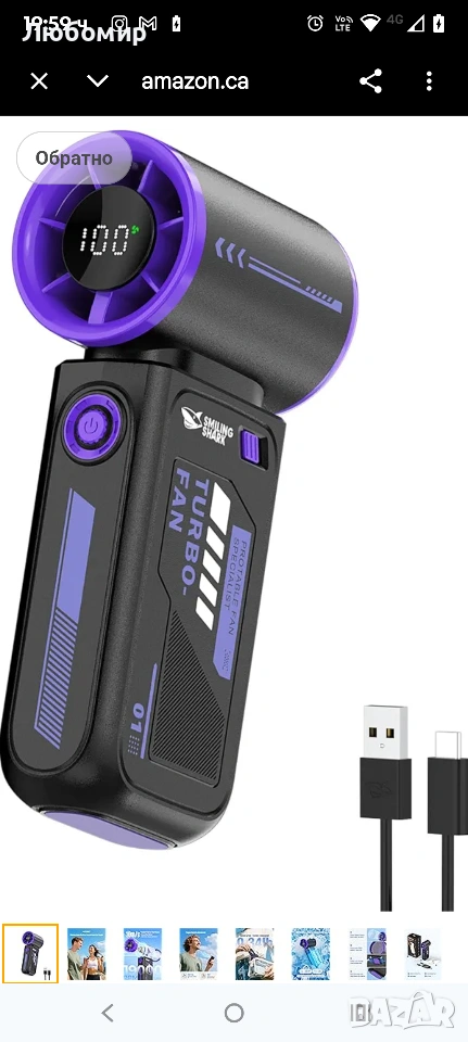 Преносим турбо вентилатор Smiling Shark TF-01 с висока скорост 10 м/с, регулируем [максимално време за охлаждане 12 часа] с LED дисплей за пътуване/концерти/къмпинг/на закрито