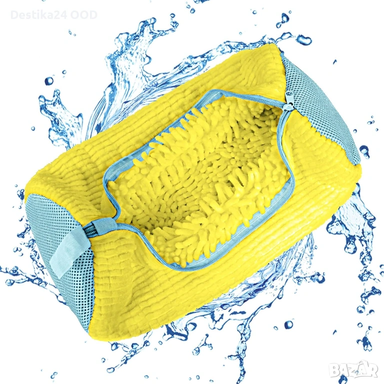 Практична плюшена чанта за пране на обувки в пералня. Осигурява нежно, но дълбоко почистване, като едновременно предпазва обувките и барабана на пералнята.