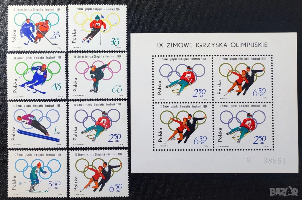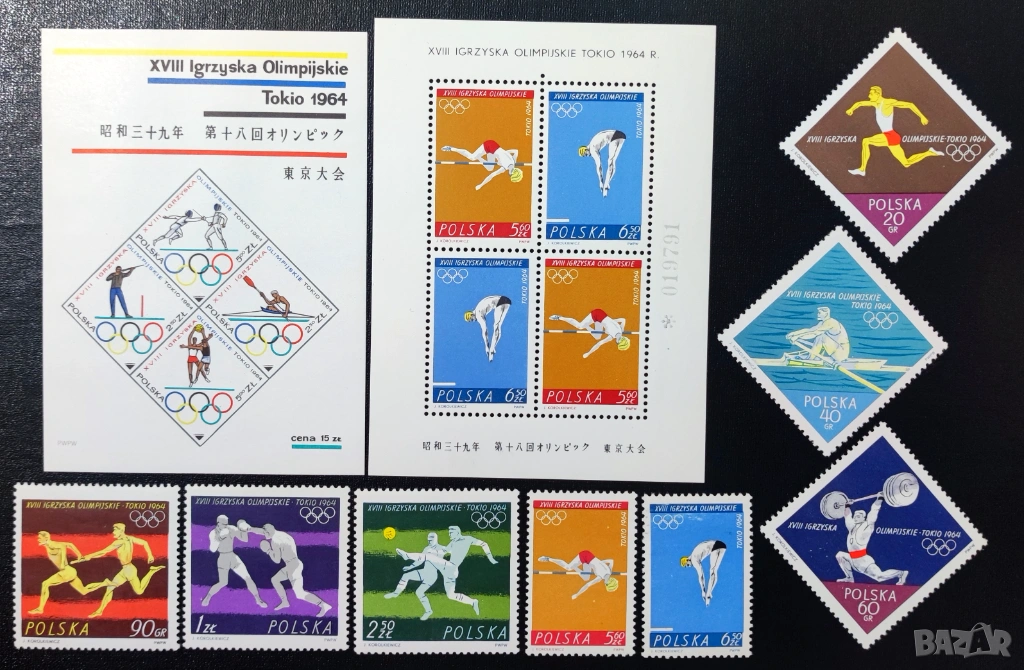 Полша, 1964 г. - лот марки на тема спорт, юбилей, олимпиада, космос, цветя, ВСВ и др. → Обява 53526901