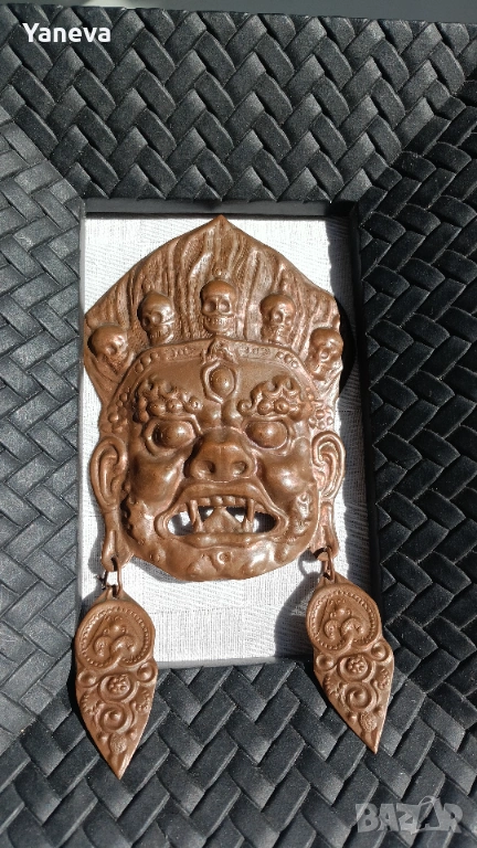 Тибетска , медна маска, амулет на митологично , защитно божество . → Обява 53527249