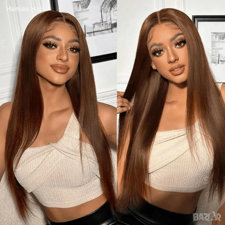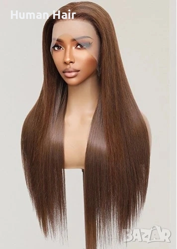Дълга и елегантна естествена перука от висококачествена бразилска коса в наситен кафяв цвят. С впечатляваща дължина от 75 см и идеално права текстура, тя придава стилна, гладка и луксозна визия.