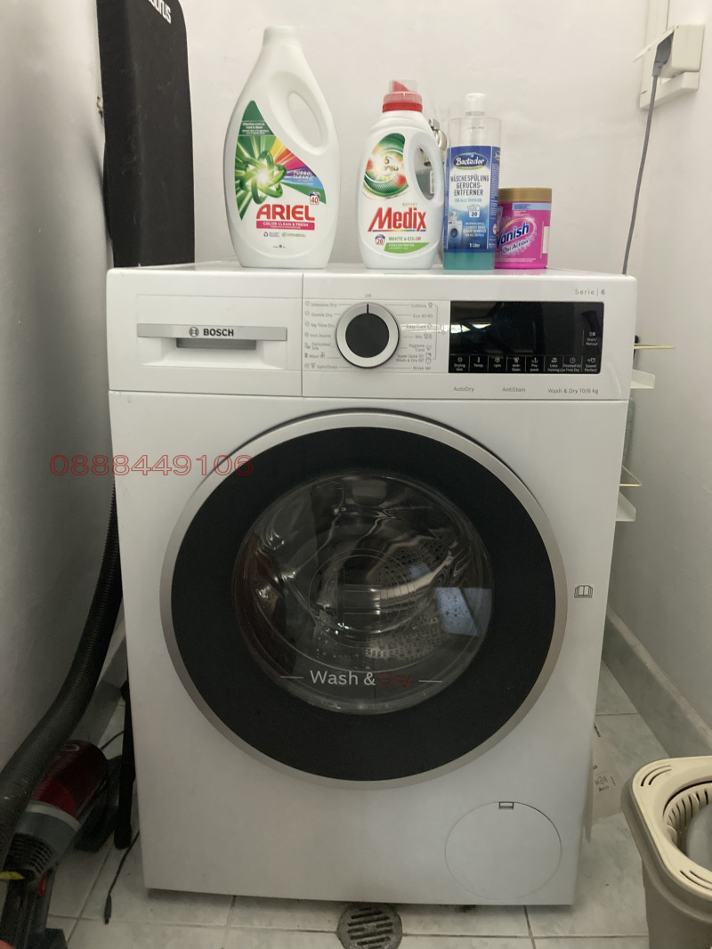 -На нивото на хола са разположени тоалетна и мокро помещение с пералня