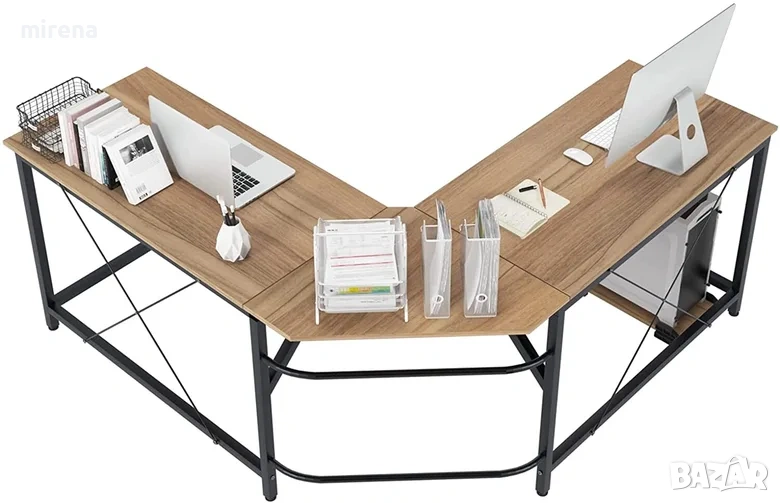 Голяма работна маса Управлението се състои от правоъгълен плот и неправилен плот. Големият плот осигурява достатъчно място за принтери, компютри, файлове и др. L-образната конструкция улеснява работата с няколко компютъра под различни ъгли едновременно. Има и достатъчно място под масата за разпъване на краката и поставяне на предмети. Общите размери са 140 х 2 дълго на ляво и дясно x 50 широко x 74 (В) см.
