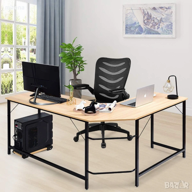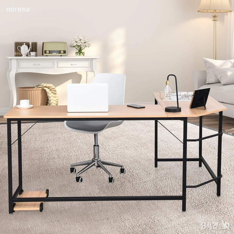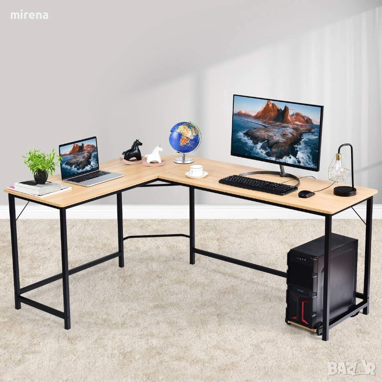 Компютърно бюро L-образно ъглово, подложка за крака стойка компютър