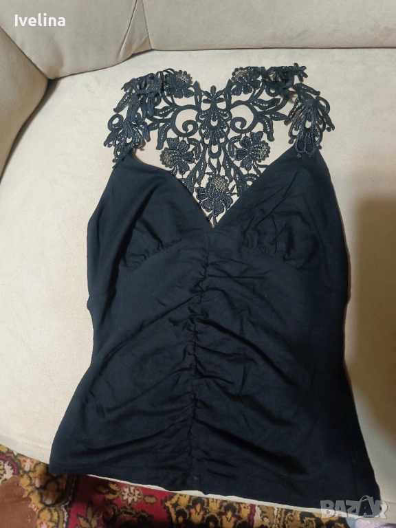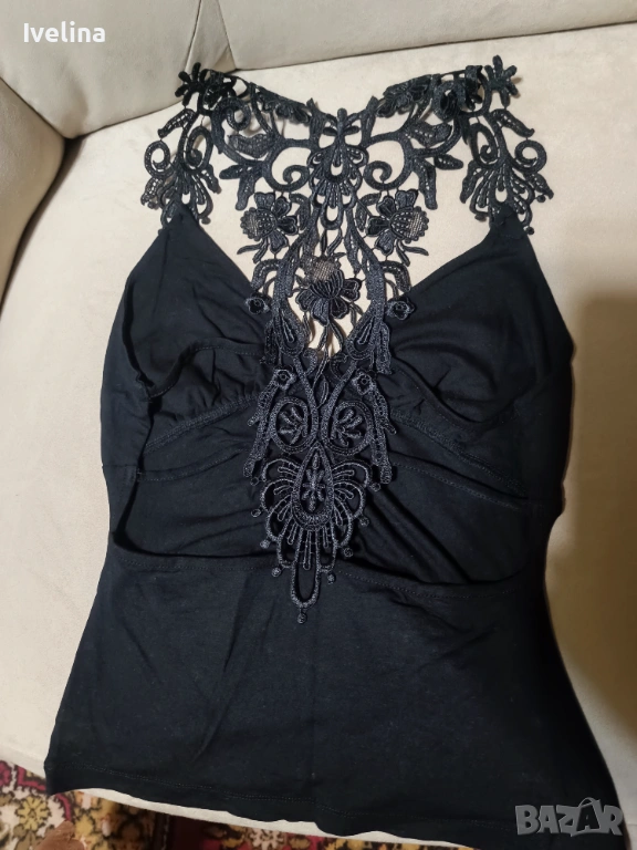 Дамски черен потник с дантелен гръб.