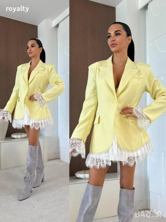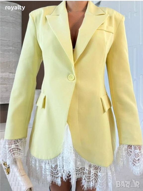 Дамско жълто елегантно сако с дантела → Обява 53527722