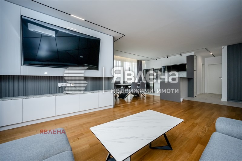 Имотът е изпълнен по индивидуален дизайнерски проект с висок клас материали и безкомпромисно качество на изпълнение, съчетаващ съвременен лукс и вечна елегантност. В основата на интериорната концепция стои сиво-бялата цветова палитра, която създава усещане за простор и светлина. Вградените ламперии добавят фин, но съществен архитектурен акцент, който обогатява пространството, без да го претрупва.